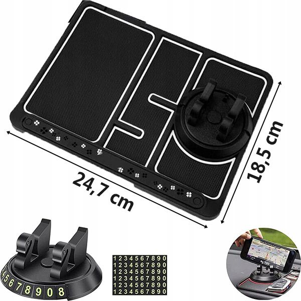 📏 Καθολική συμβατότητα: Με διαστάσεις 24,7 x 18,5 εκ., αυτό το πατάκι εφαρμόζει άψογα σε κάθε ταμπλό αυτοκινήτου, εξασφαλίζοντας σταθερή και ασφαλή τοποθέτηση.