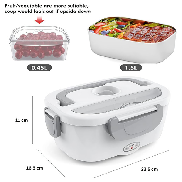 Αυτό το θερμαινόμενο δοχείο γεύματος περιλαμβάνει δύο αφαιρούμενα δοχεία 1,5 λίτρων και ένα πλαστικό δοχείο 0,45 λίτρων που μπορούν να χρησιμοποιηθούν εναλλάξ.