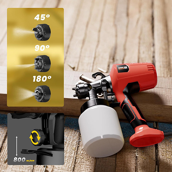 Το ειδικό ακροφύσιο παράγει μια λεπτή ομίχλη χρώματος που κάθεται ομοιόμορφα, χωρίς γραμμές ή μπαλώματα. Το εργαλείο δημιουργεί την αίσθηση ότι κάθε περιοχή βάφεται μόνη της “όπως πρέπει”, ανεξάρτητα από το υλικό, την εμπειρία του χρήστη ή την κατεύθυνση της κίνησης.