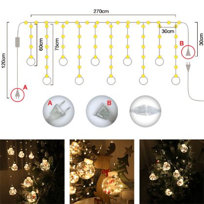Κουρτίνα LED με 10 χριστουγεννιάτικες μπάλες.