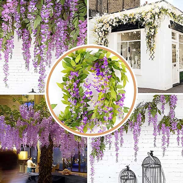 Ψάχνετε να δημιουργήσετε εντυπωσιακές ανθοσυνθέσεις; Η WISBLOOM, η φωτεινή μοβ βιστέρια, με πλούσια πράσινα φύλλα, είναι ιδανική για τη διακόσμηση αψίδων, πέργκολων, τοίχων, βιτρινών καταστημάτων, εστιατορίων, γραφείων, πάρτι και πολλά άλλα. Ανθεκτικά στην υπεριώδη ακτινοβολία και μεγάλης διάρκειας, αυτά τα λουλούδια μπορούν να χρησιμοποιηθούν σε εσωτερικούς ή εξωτερικούς χώρους, προσθέτοντας μια ζωντανή πινελιά σε κάθε περιβάλλον.